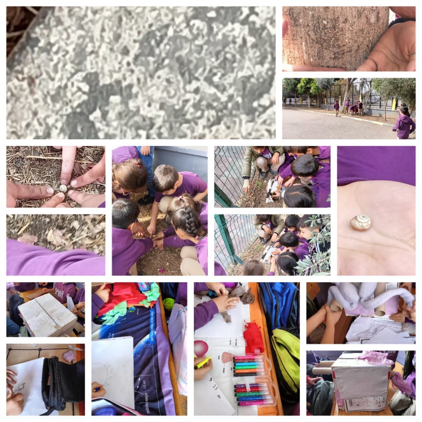 Ardından yaratıcı tasarım aşamasında öğrenciler topladıkları doğal malzemeleri çizim araçlarıyla birleştirerek kendi hayali canlılarını oluşturdular. Öğretmen, canlıların özellikleri — ne yedikleri, nasıl savunma geliştirdikleri, nasıl hayatta kaldıkları — hakkında yönlendirici sorular sorarak süreci destekledi. Böylece çocuklar ekolojik bilgileri eğlenceli bir şekilde uyguladı.